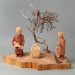 Auf der Suche nach Themen stellte ich sehr schnell fest, dass ich mich in meine eigene Kindheit zurückversetzte. Die Nachkriegswirren hatten es mit sich gebracht, dass ich im Münsterland groß wurde. In meiner weiteren Schnitzarbeit widmete ich mich mehr und mehr konkreten Personen, Situationen und Erlebnissen, die ich als Kind erfahren habe. Als die ersten Arbeiten gefertigt waren, wurde mir klar, dass ich jede weitere Schnitzidee unter das Thema „Dreidimensionale Kindheitserinnerungen“ stellen würde. Ab diesem Zeitpunkt setzte ich mich vollkommen fokussiert mit dem Münsterland und den Münsterländern aus verschiedenen Perspektiven auseinander.