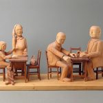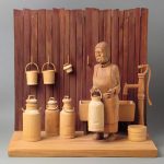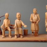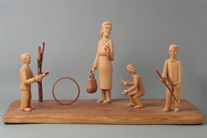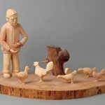 Als Junge habe ich intensiv Modellbau betrieben und zu dem Material Holz ein gutes Verhältnis. Daran habe ich mich erinnert. Im Dezember 1982 fing ich dann an, kleinere Dinge zu schnitzen. Ein Pferd für unsere Tochter, sie war Pferdenärrin. Einen Fußballer für unseren fußballbegeisterten Sohn. Eine Ente mit zwei Kleinen auf dem Rücken für meine Frau. In den folgenden Jahren kamen einzelne Figuren hinzu: Magd, Bäuerin, Dorfpolizist…