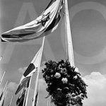 Olympische Spiele 1972, Internationales Jugendlager, Kranzniederlegung an der Israelischen Flagge, München 06.09.1972