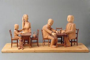 Links: Eine Frau mit Tochter, aber ohne Ehemann (ein münsterländer Sakrileg). Sie streicht ihre Haare und versucht, mit nahe stehenden jungen Männern anzubandeln. Das Mädchen spricht mit seiner Puppe, einem „münsterländer Voodoo“. Derweil unterhalten sich zwei Bauern über die gute alte Zeit. Ein Bauer sieht die Gegenwart skeptisch, der andere will sich nur noch erinnern.
