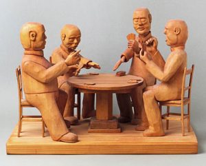 Zwei Bauern spielen mit einem Viehhändler Doppelkopf. Weil ein dritter Bauer ausfiel, hatte ein „Öhm an de Mür“ (unverheirateter Bruder eines Bauern) die Gelegenheit, mitspielen zu dürfen.